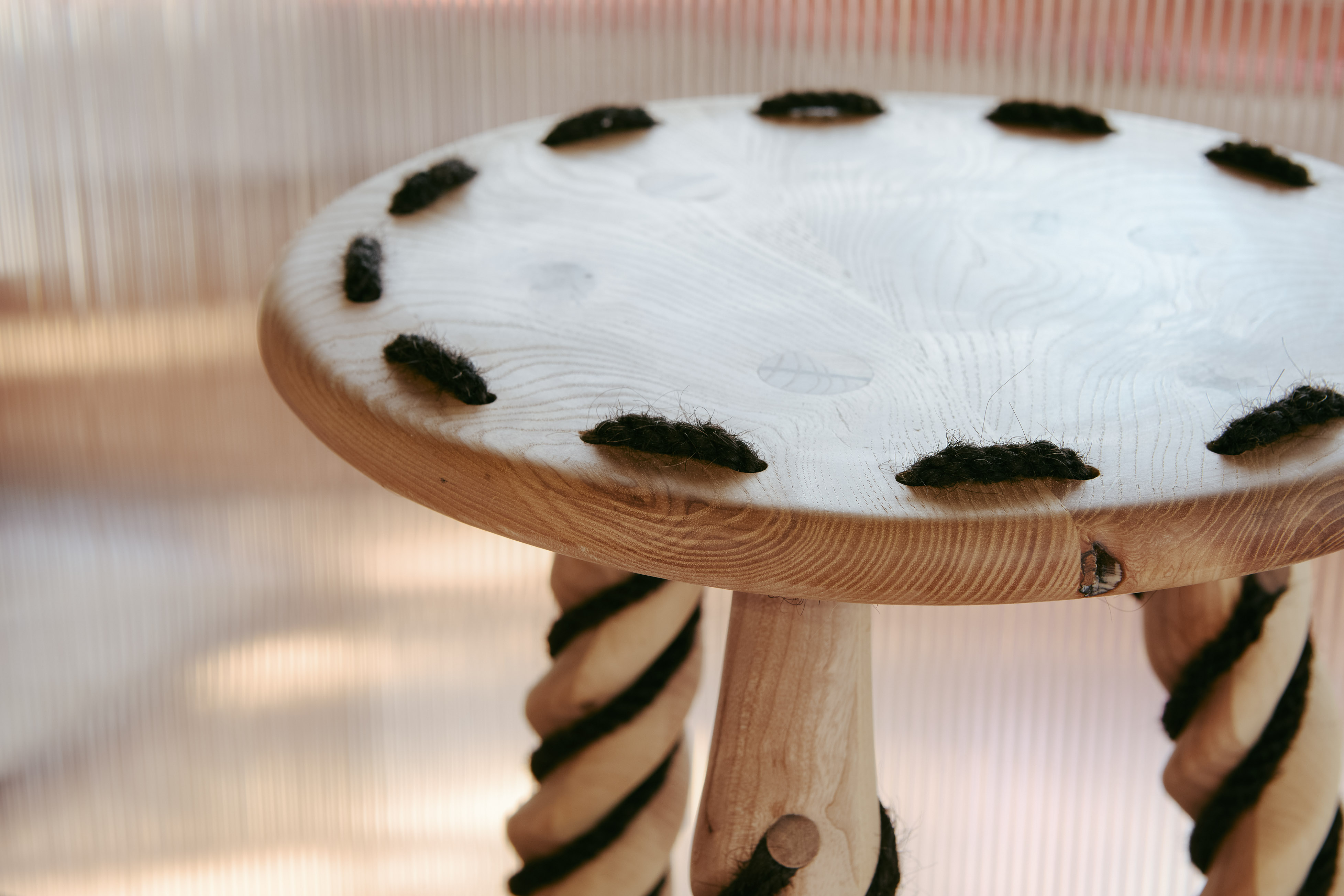 Captivated by the naturalness of the hair and its ability to retain the same qualities as when alive, Wilkinson & Rivera have applied the hair rope to furniture. The duo have inserted the soft and supple rope, in place of traditional seating materials such as rush, which becomes rigid after being harvested and dried. The design concept draws parallels between wood and hair; both grown, harvested, then hand-carved and spun respectively, recalling a sense of traditional manufacturing which is now far less common.